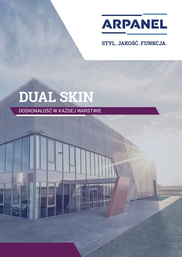 DUAL SKIN ist eine außergewöhnliche architektonische Lösung, die darauf abzielt, die ästhetischen Werte des realisierten Gebäudes zu steigern, indem hochwertige ARPANEL Sandwichplatten mit der außergewöhnlichen Ästhetik einer zusätzlichen architektonischen Verkleidung verwendet werden, die mit Systemschienen an den Platten befestigt wird. 🏢